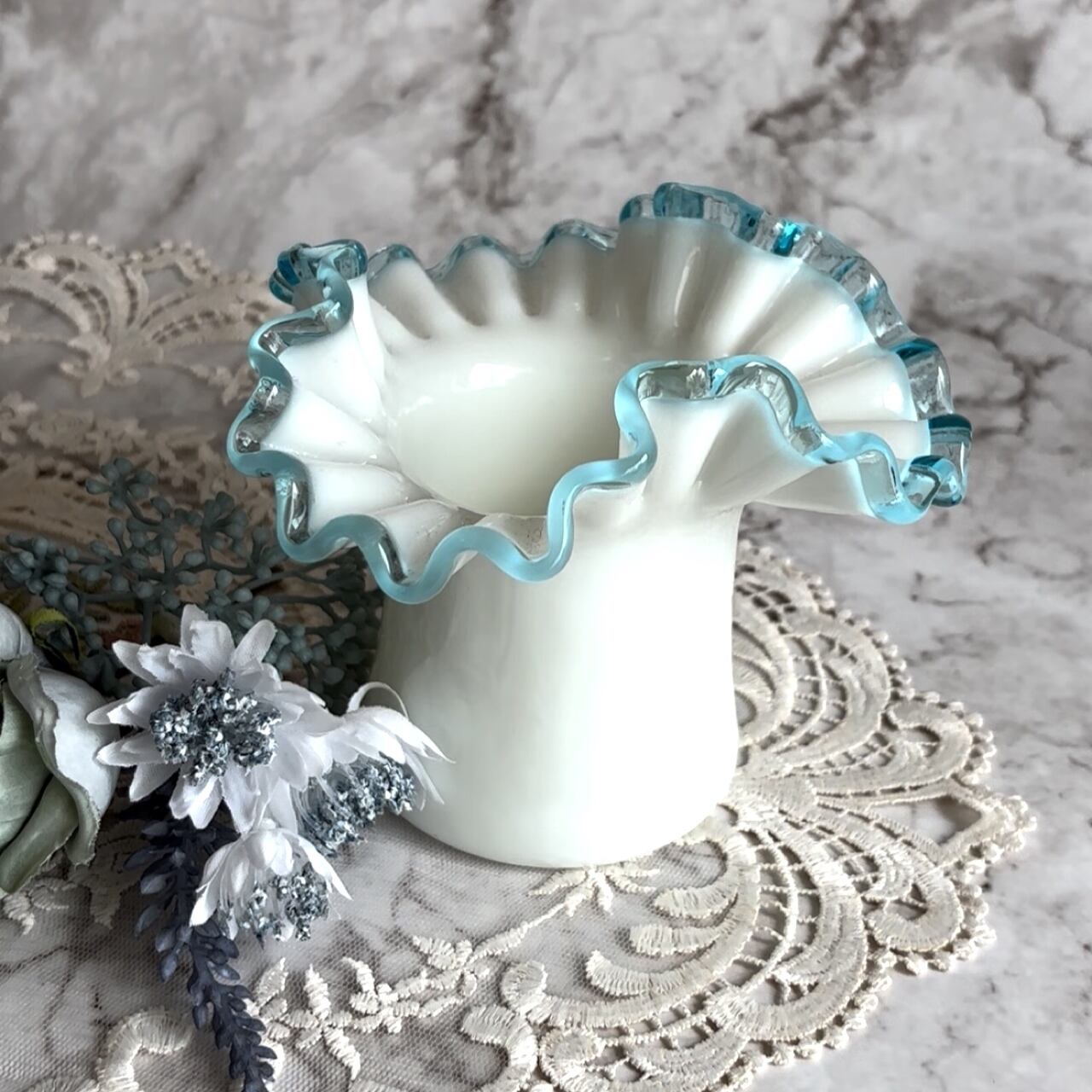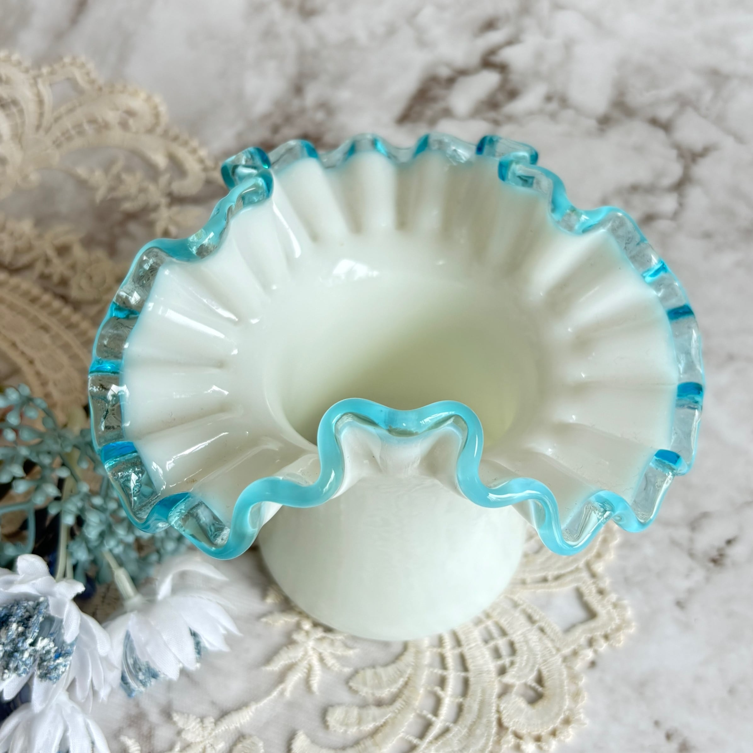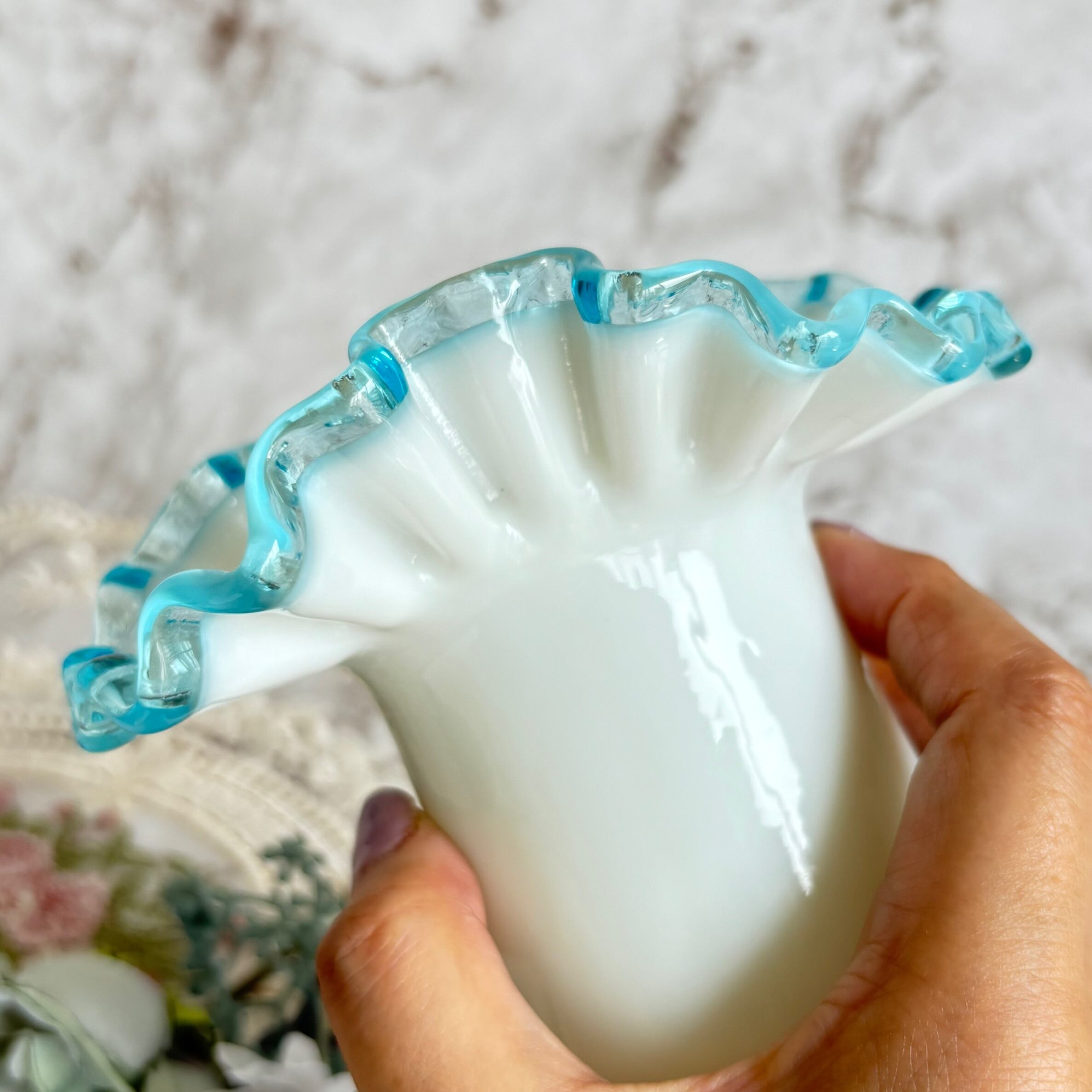 アメリカ✴︎フェントン社 シルバークレストホワイト×ブルー フラワーベース