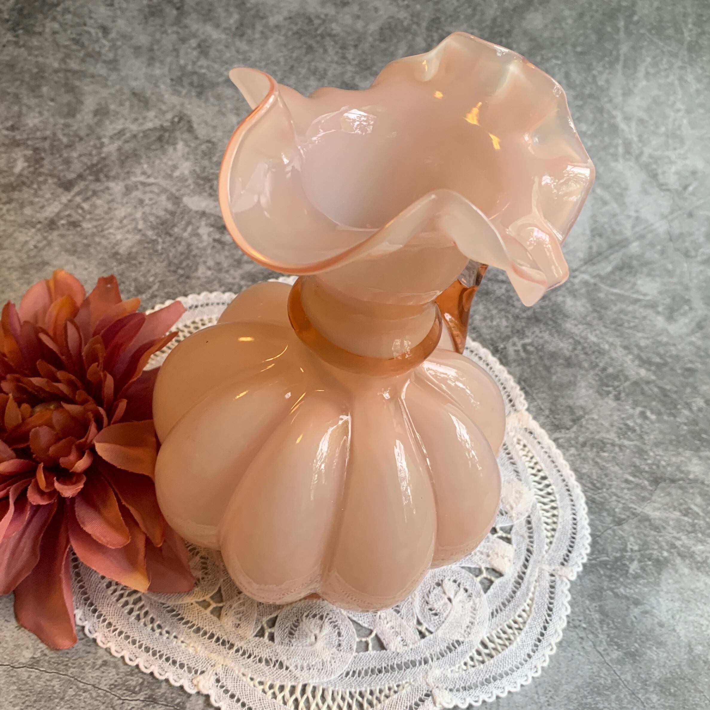 アメリカFenton社✴︎シルバークレストピンクフラワーベース