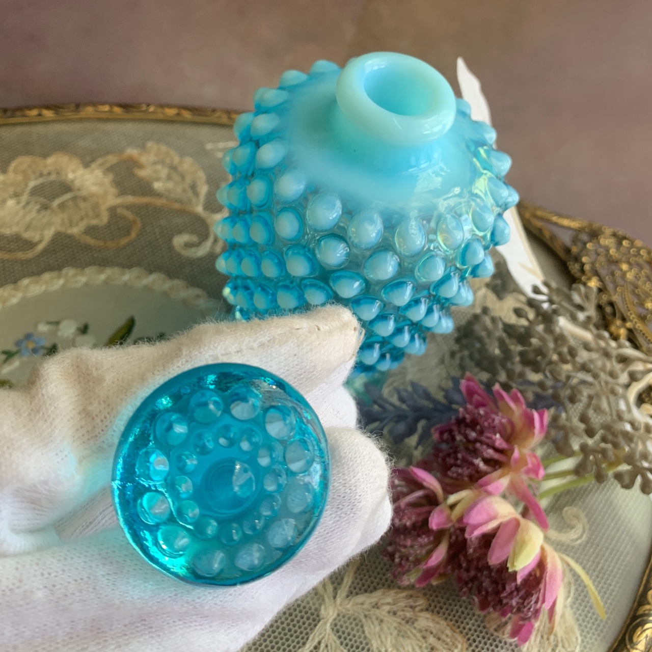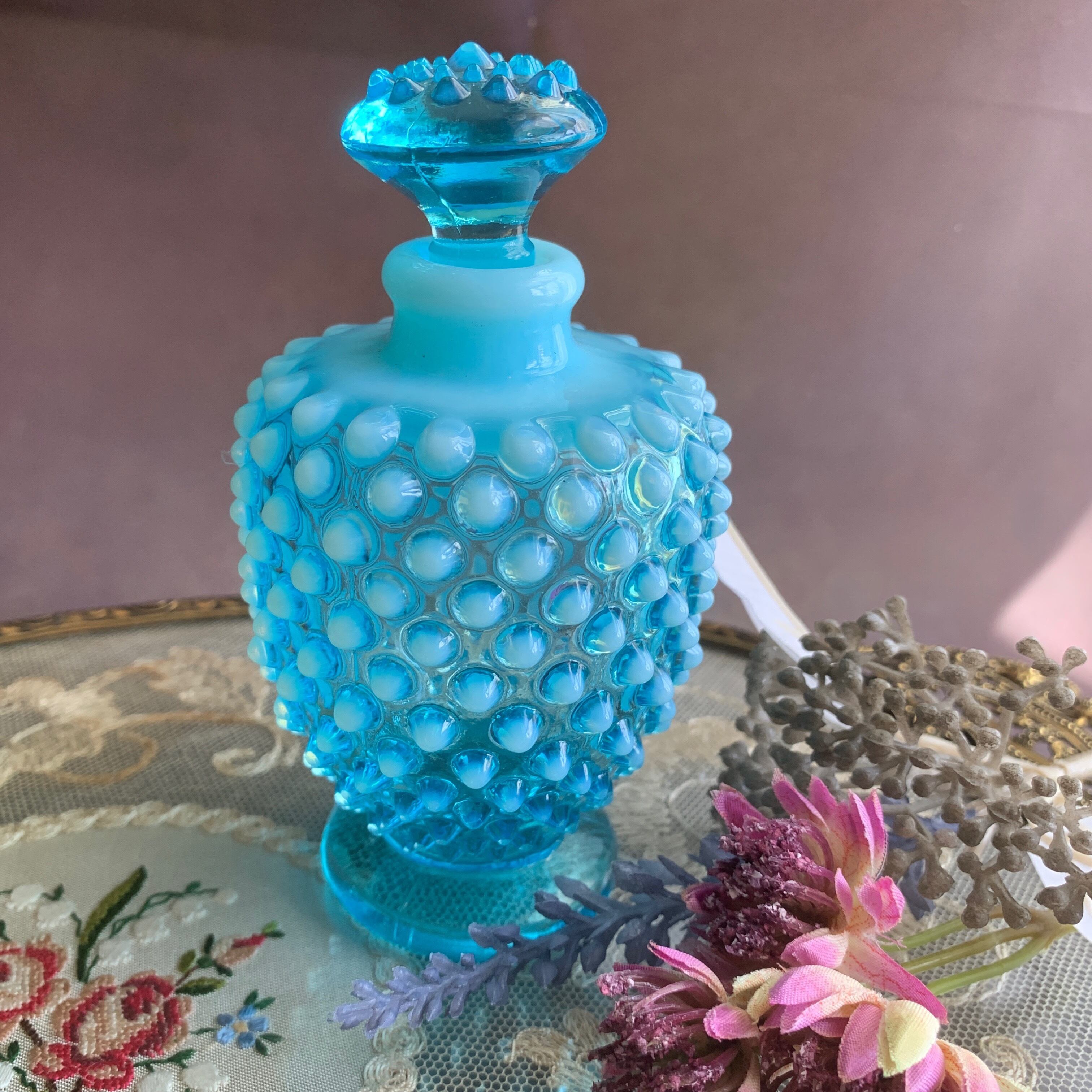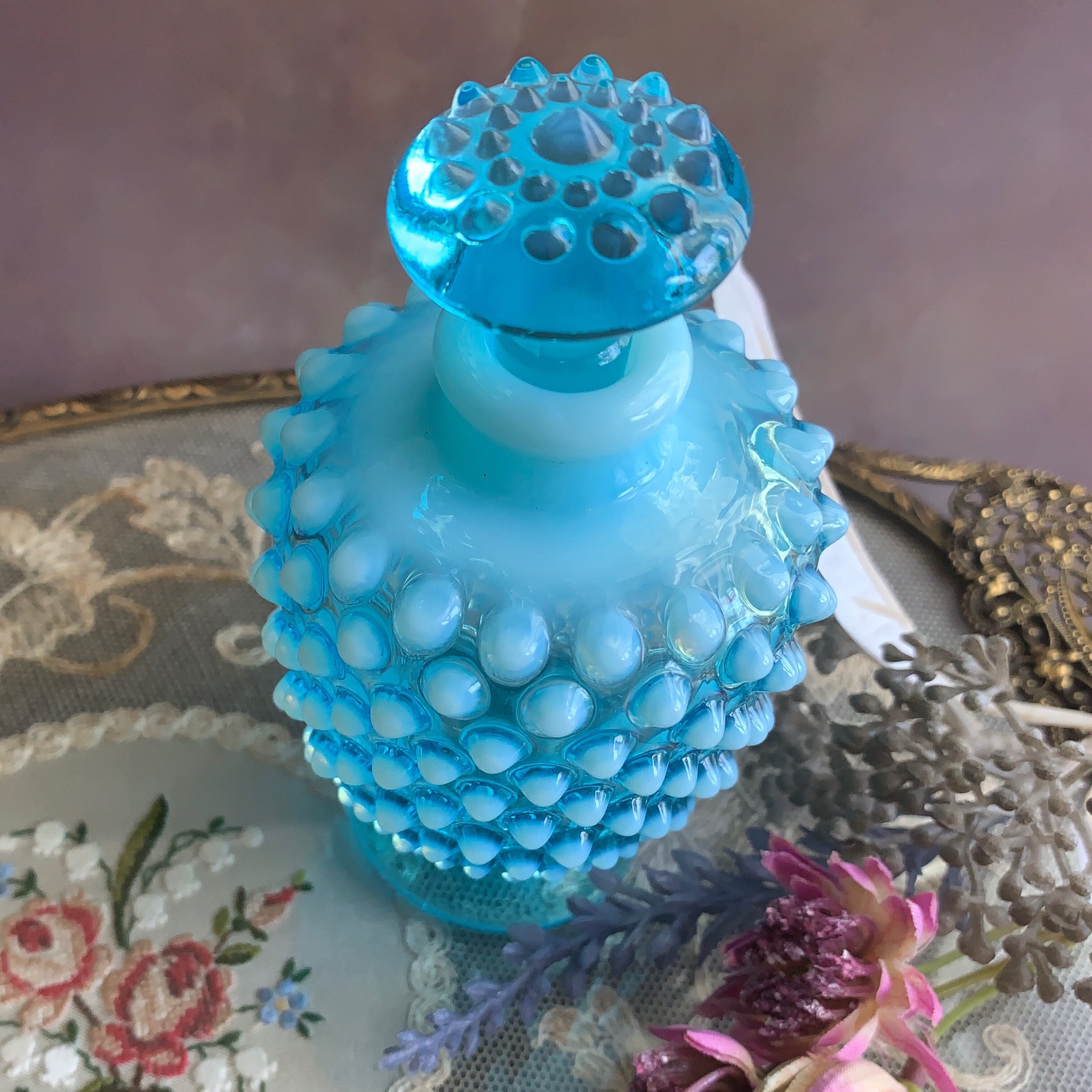 アメリカ フェントン社✴︎ ブルー オパールセント ホブネイル香水瓶
