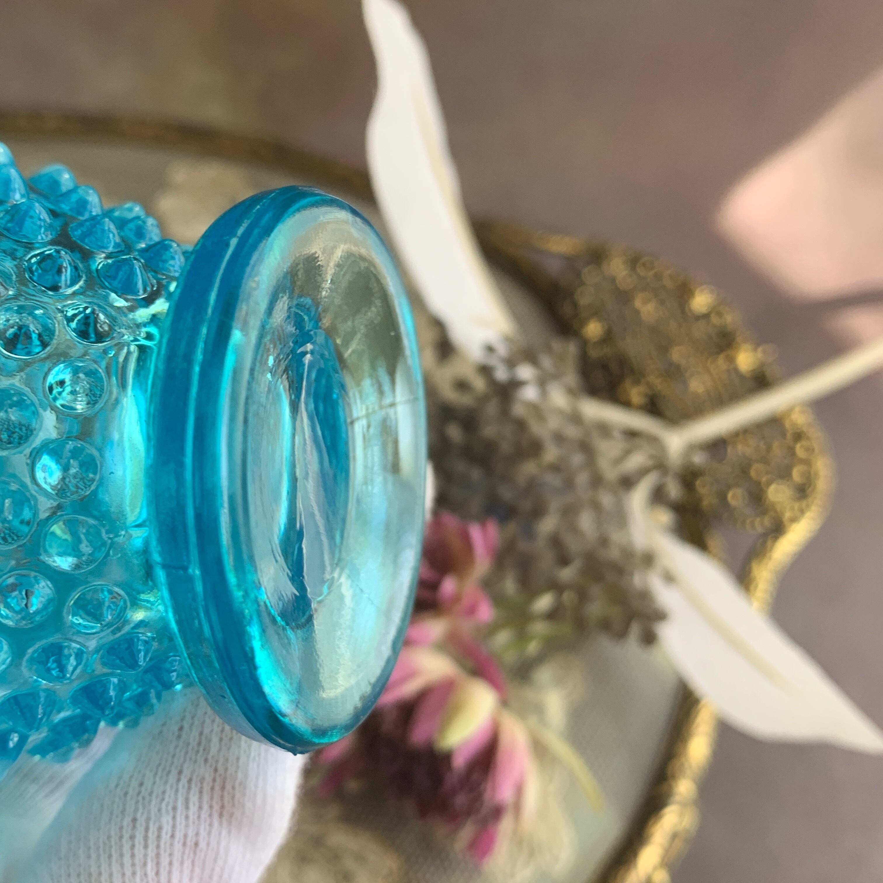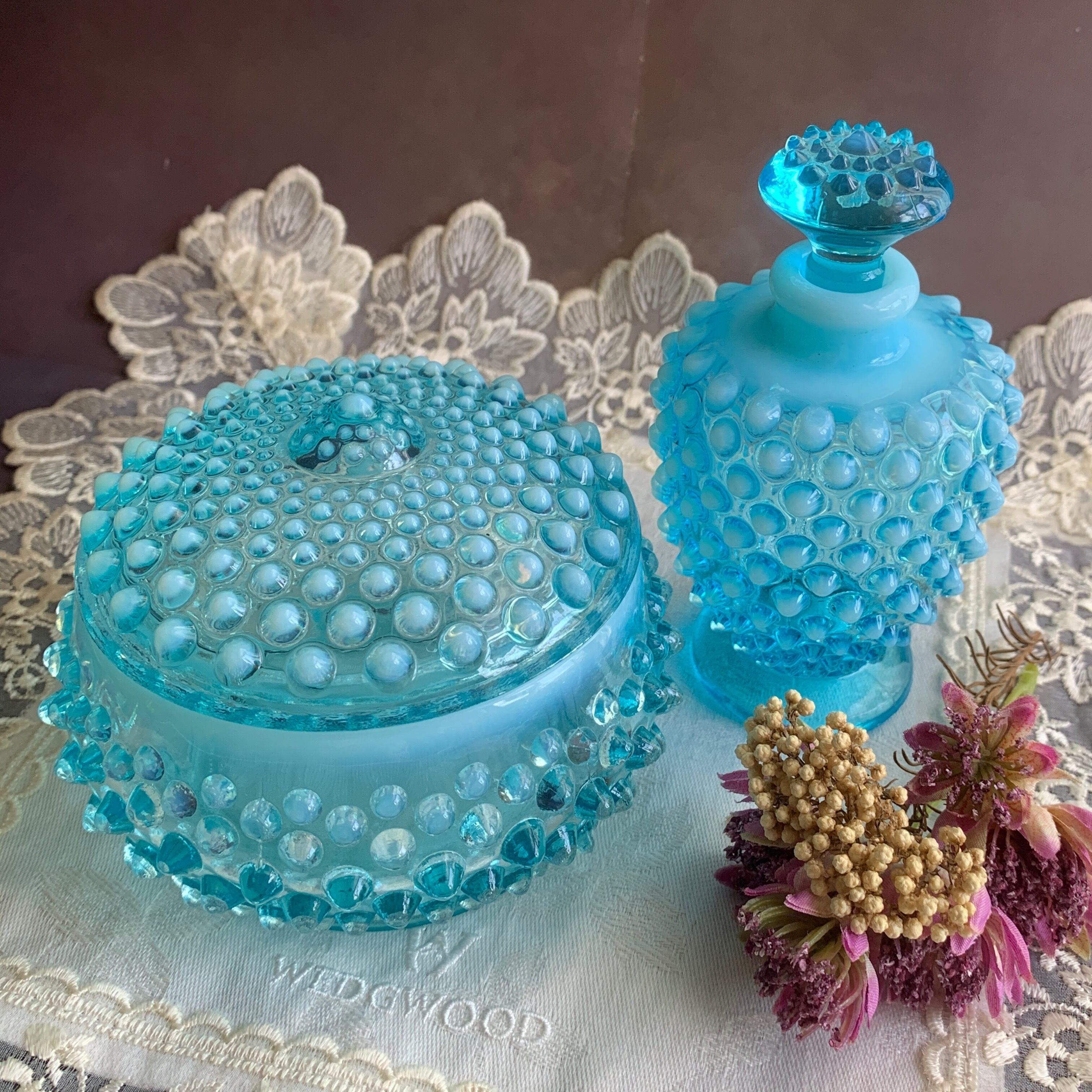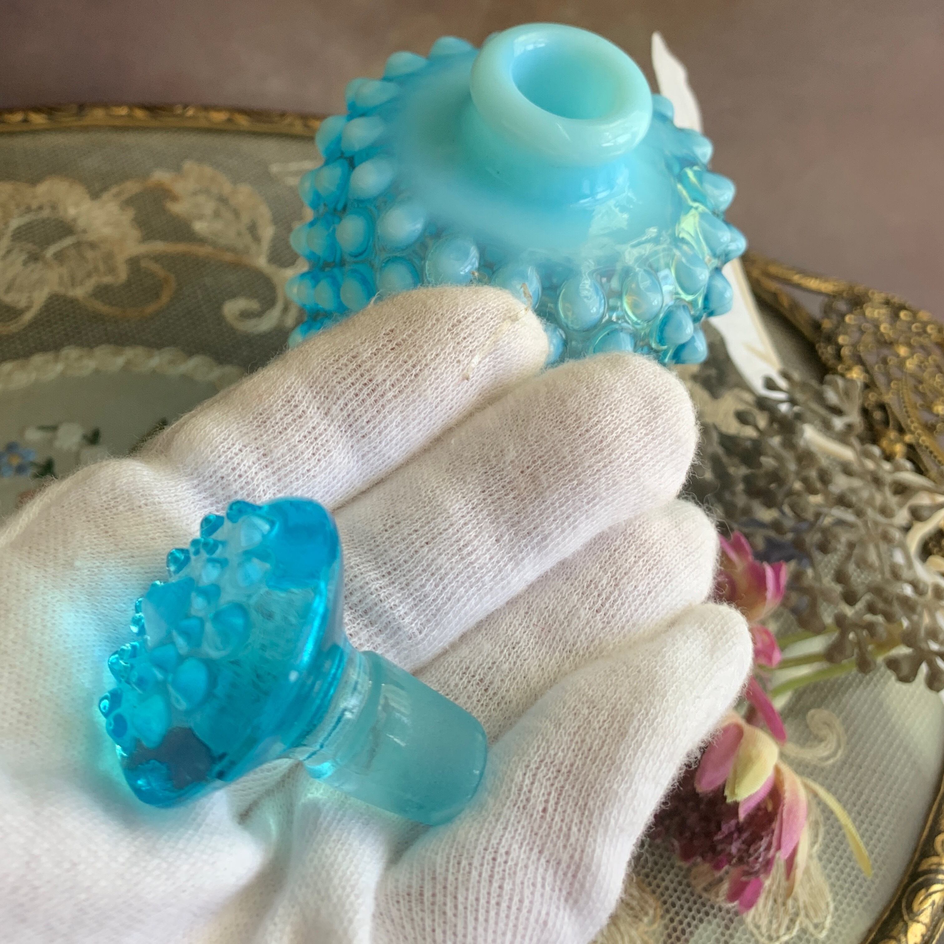 アメリカ フェントン社✴︎ ブルー オパールセント ホブネイル香水瓶
