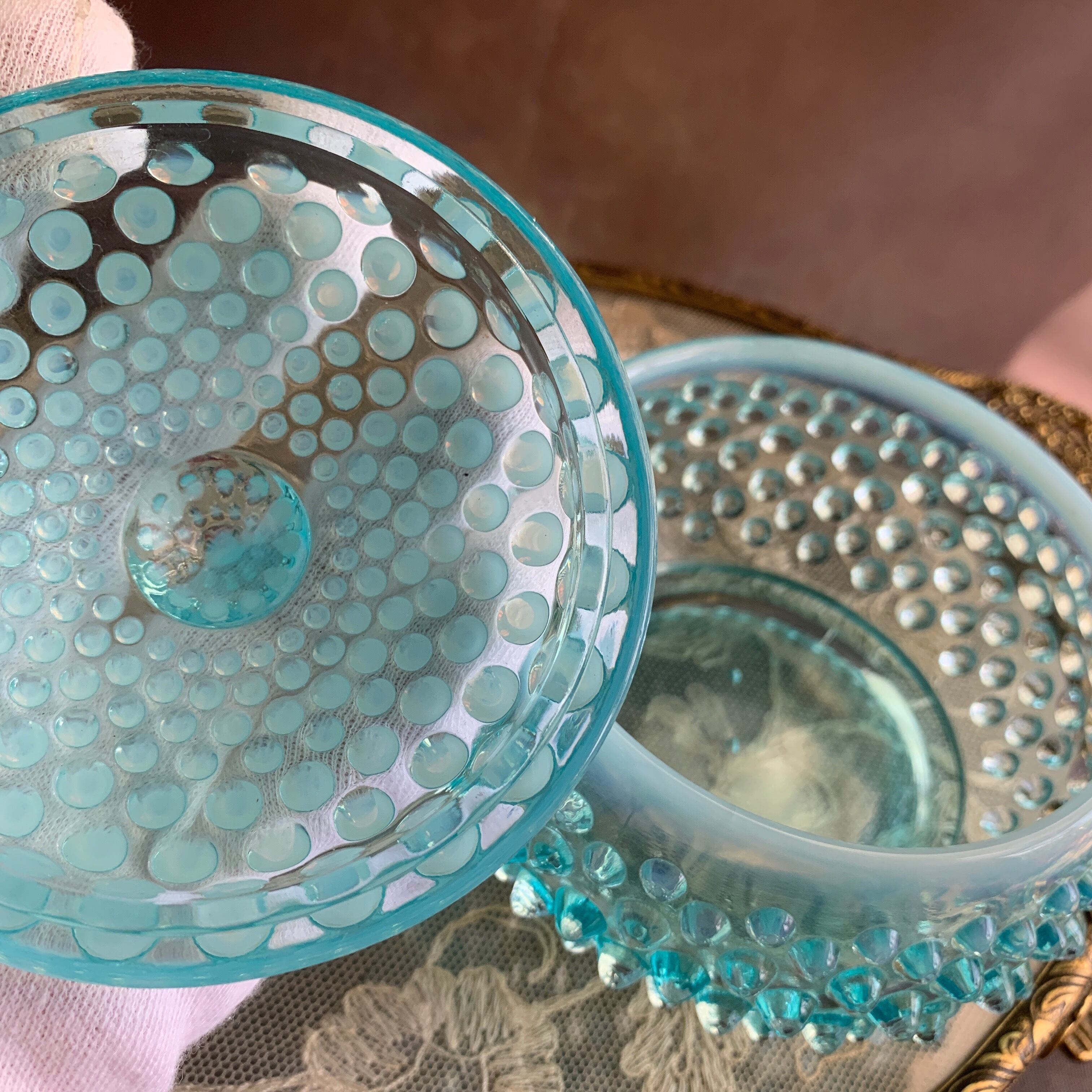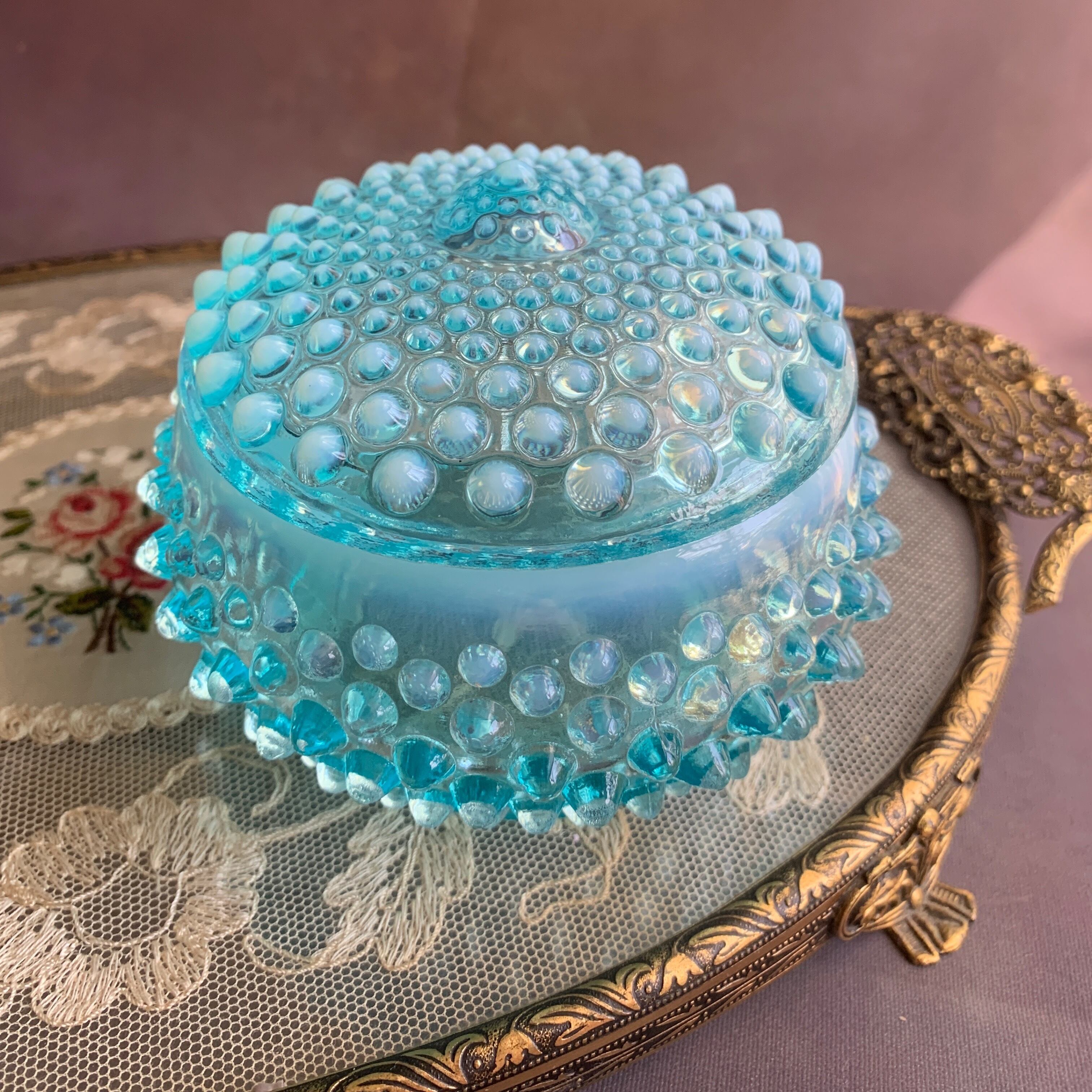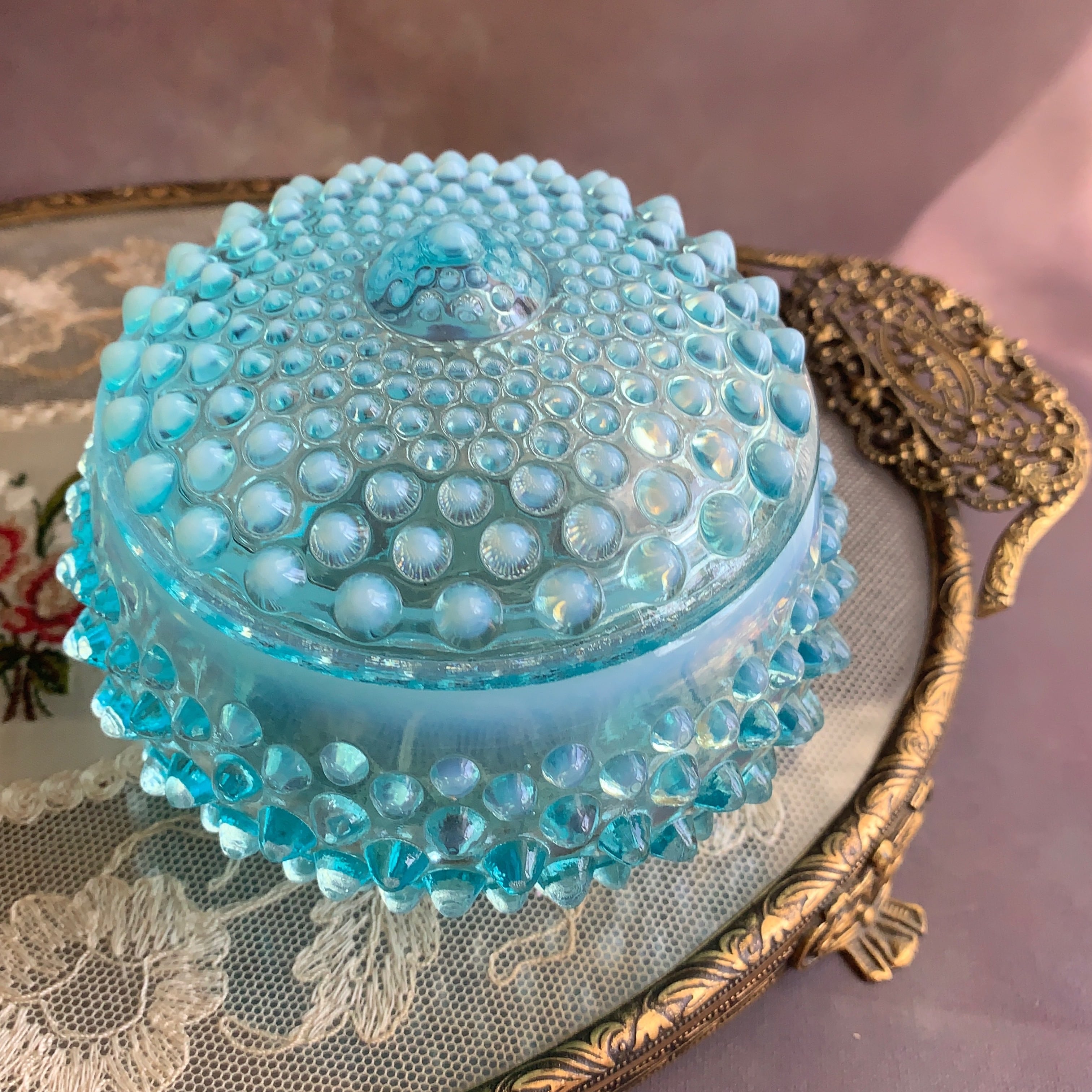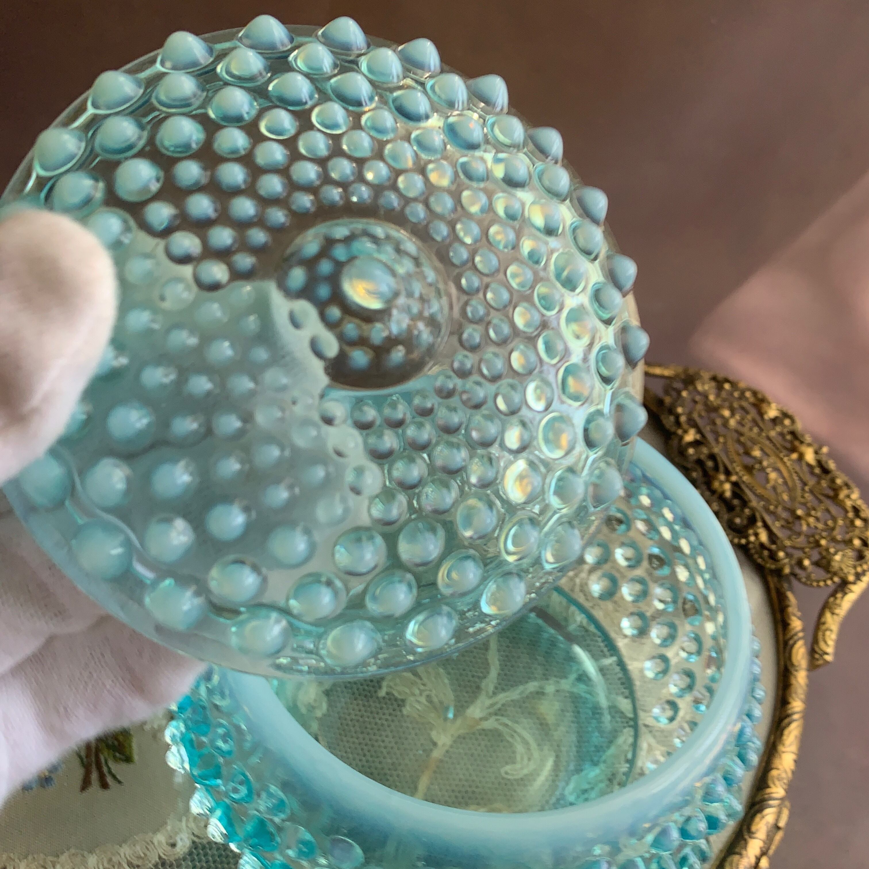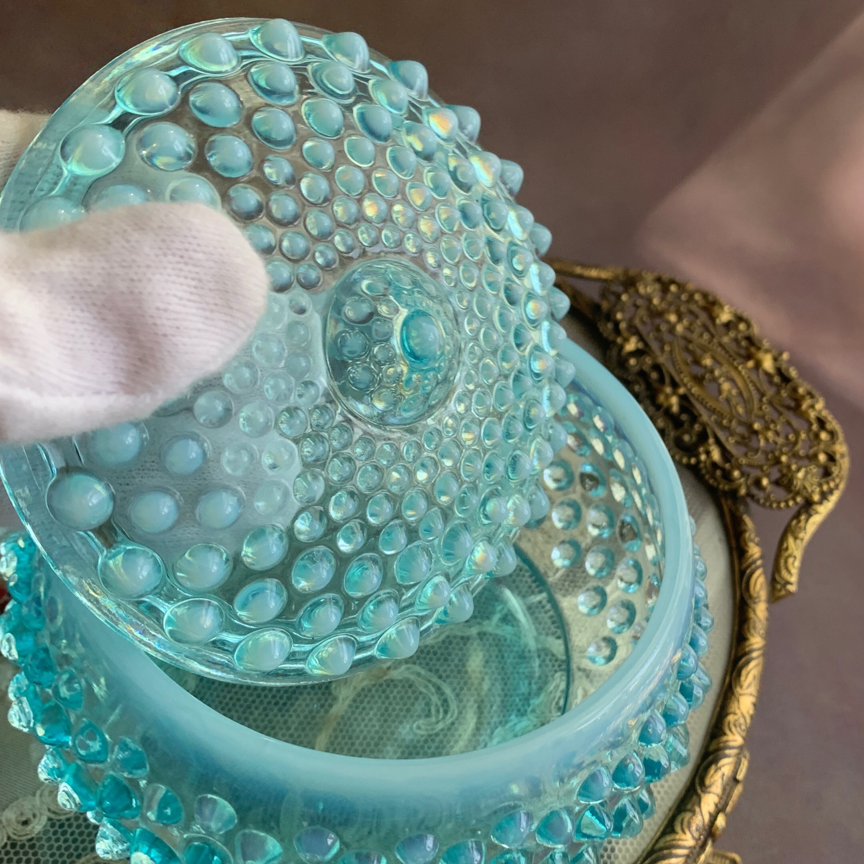 アメリカ フェントン社✴︎ホブネイルブルーオパールセント コットンジャー