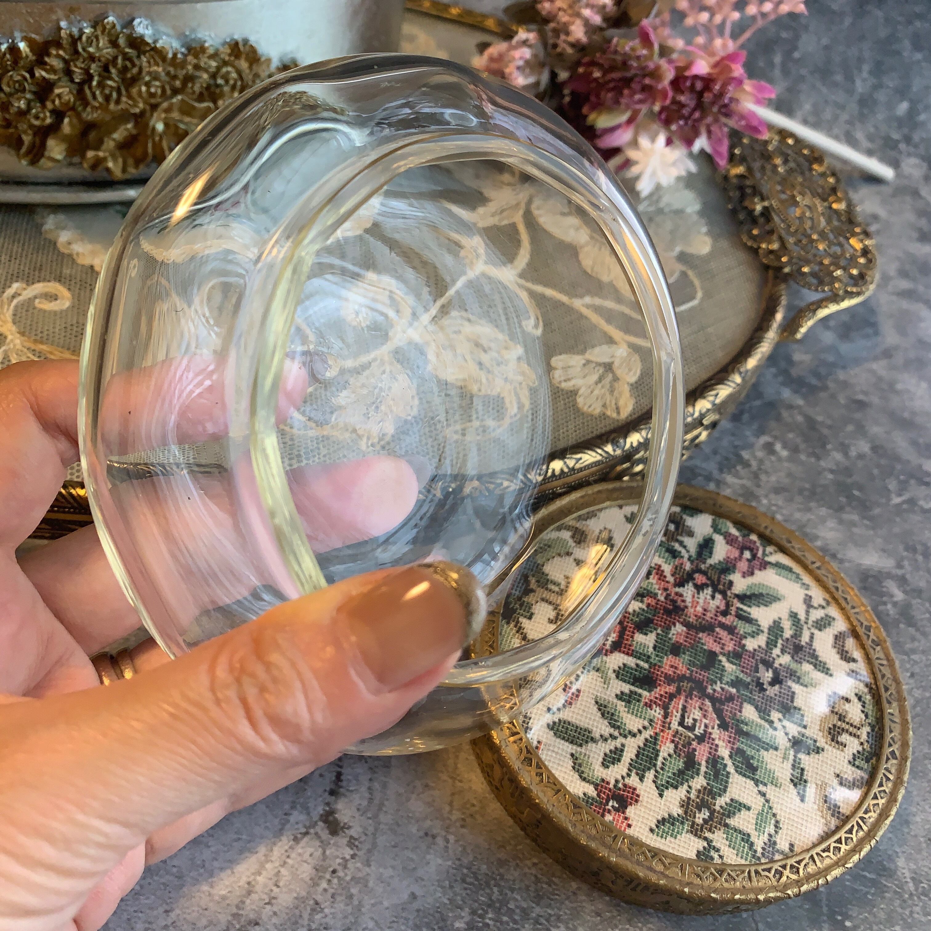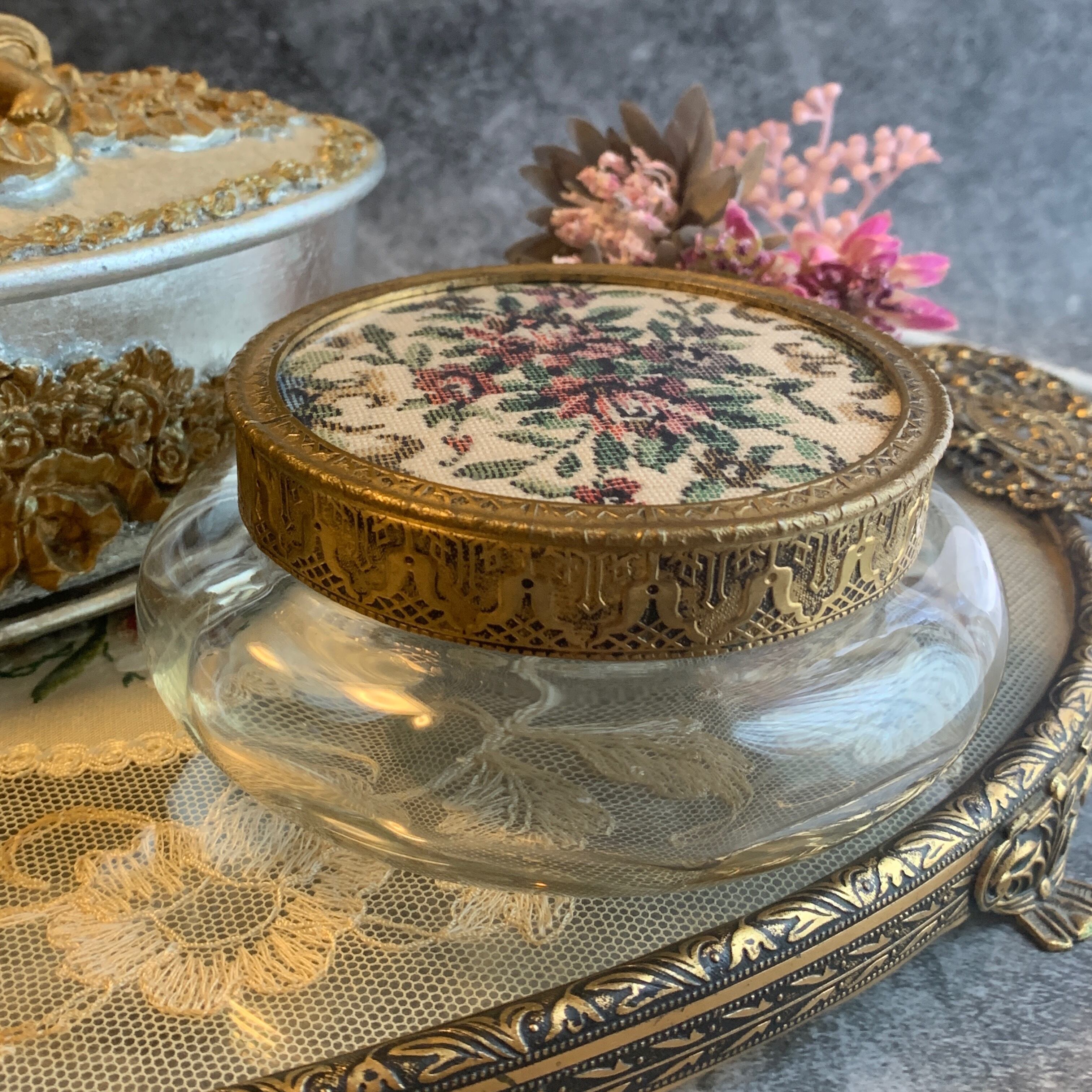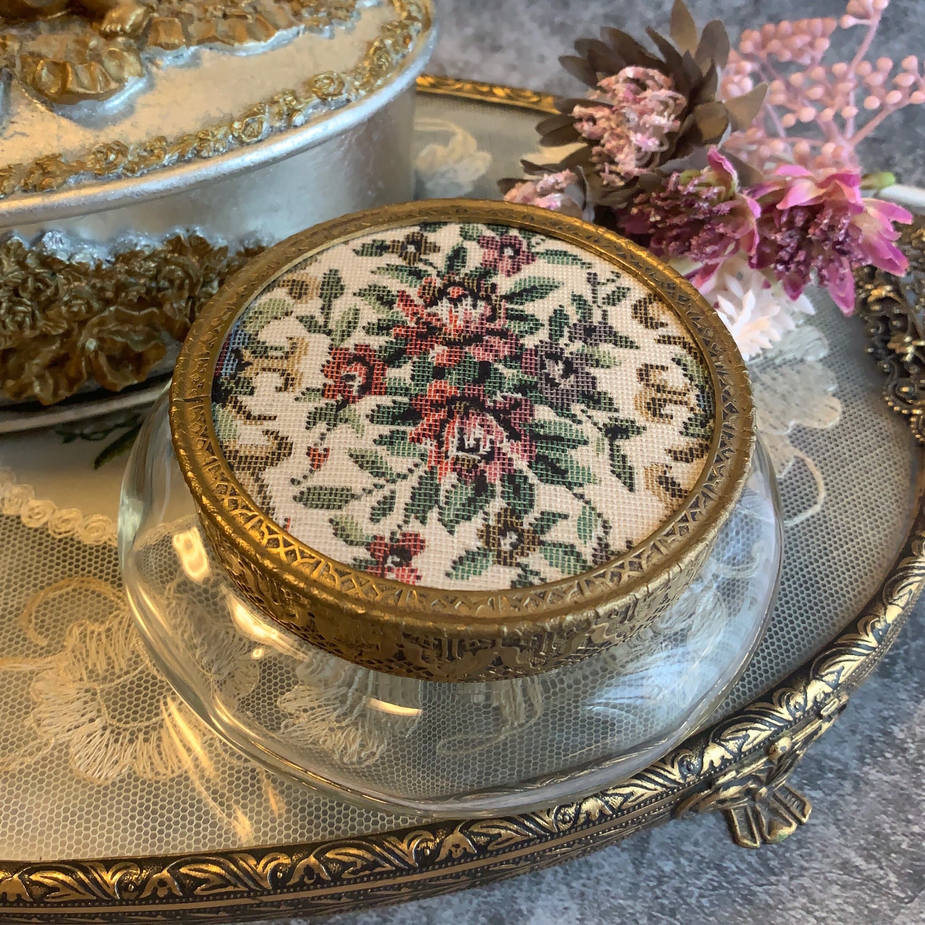 イギリス製✳︎稀少!ミラー付きプチポワンガラスキャニスター