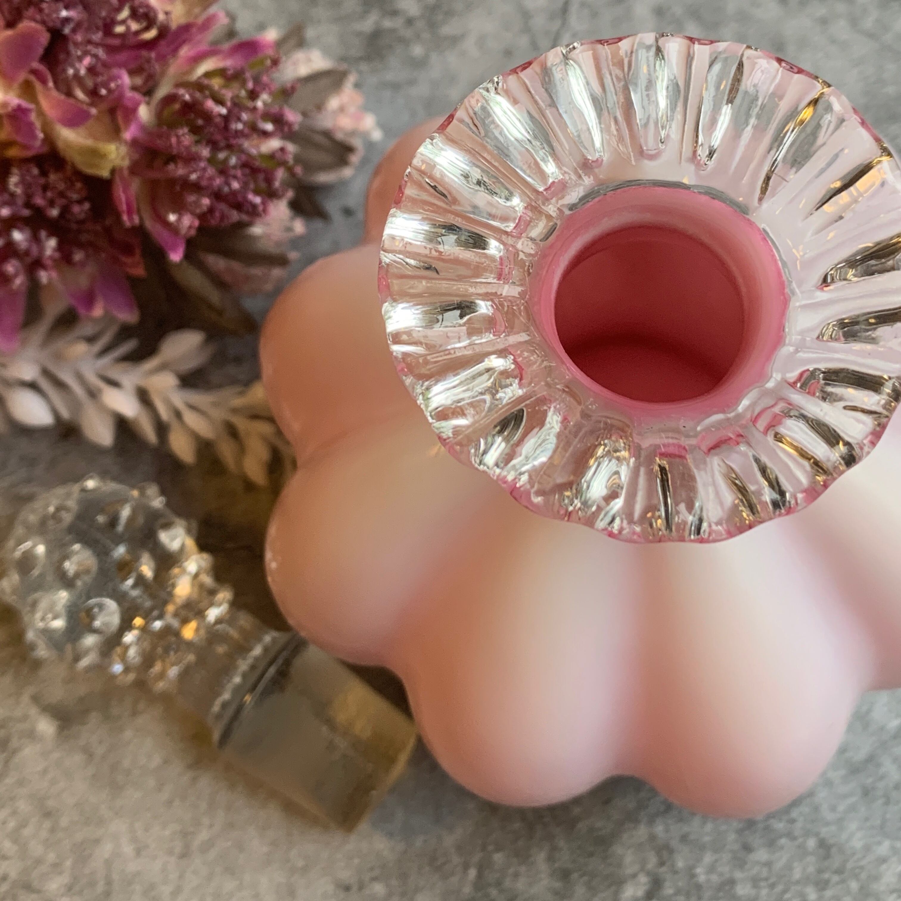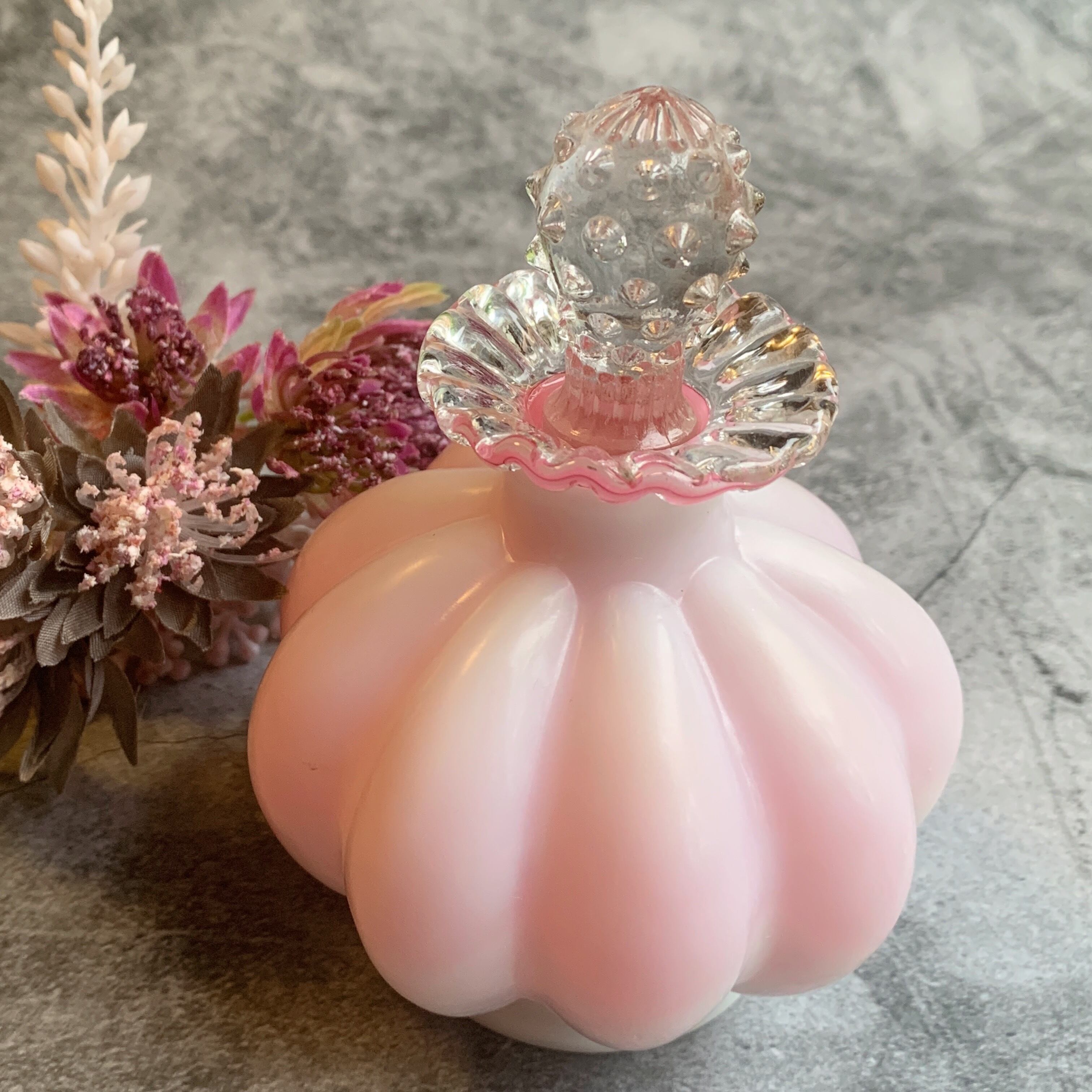 稀少!アメリカ✴︎フェントン社✴︎フラワークレストメロンピンク香水瓶