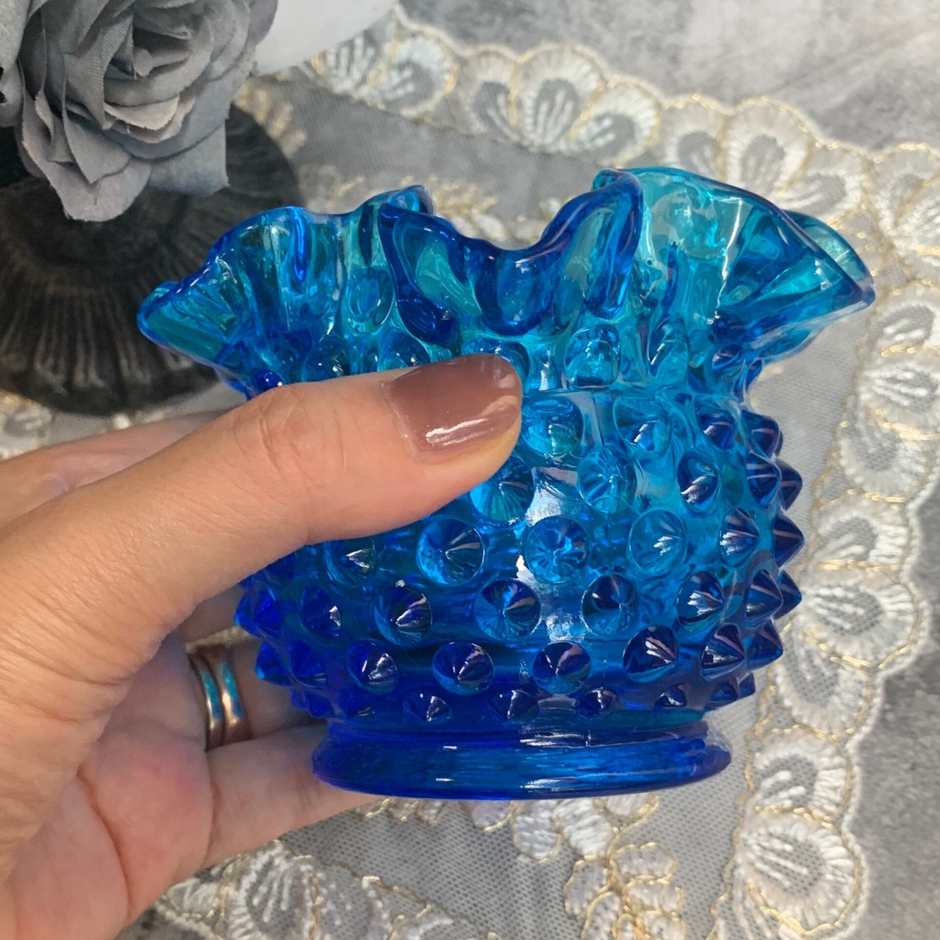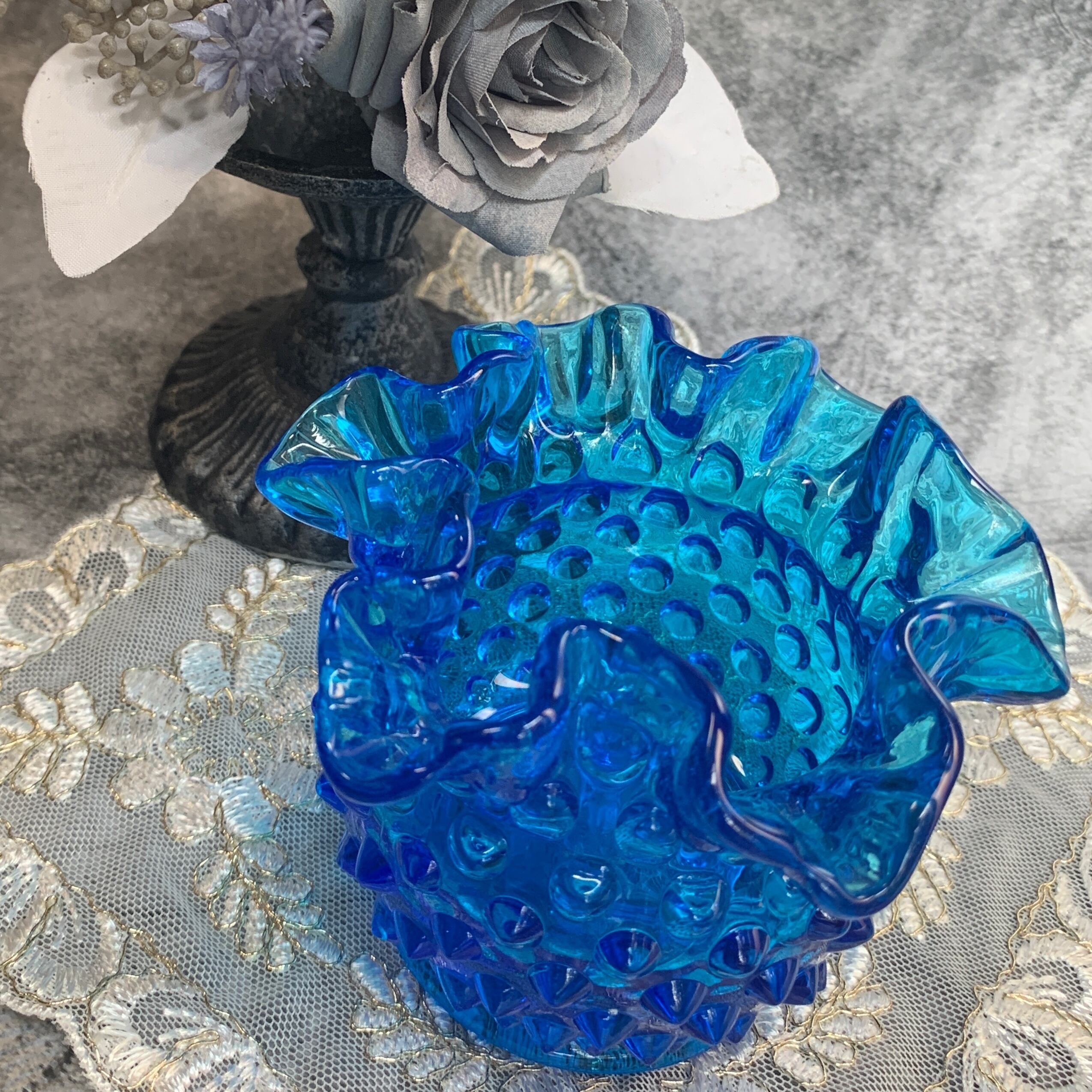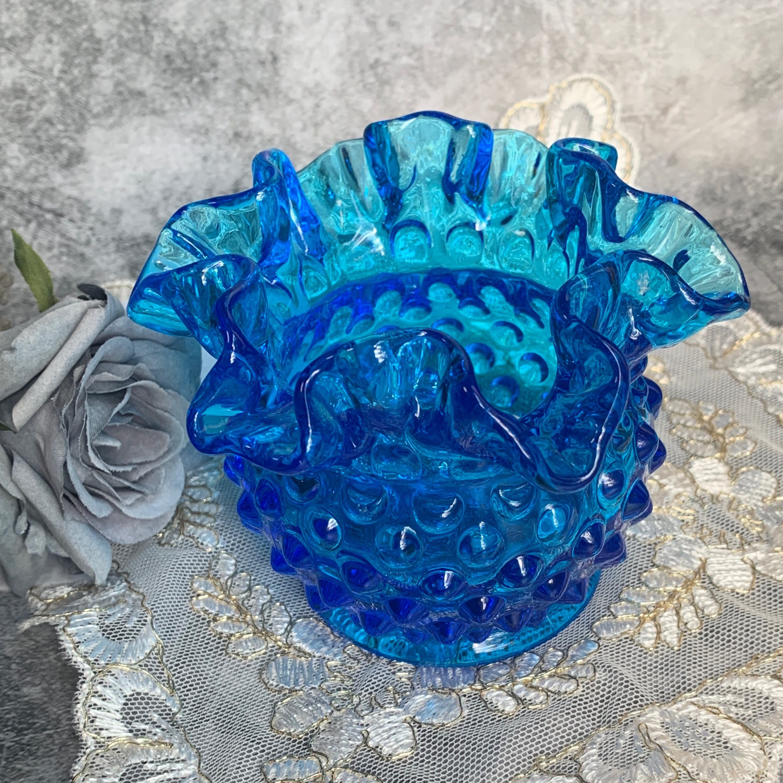 ①アメリカ✴︎フェントン社✴︎コバルトホブネイルフラワーベース