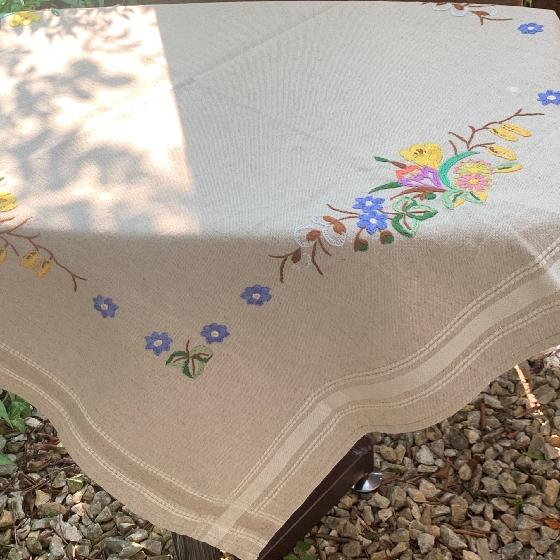 ポーランド刺繍✴︎リネン手刺繍テーブルクロス