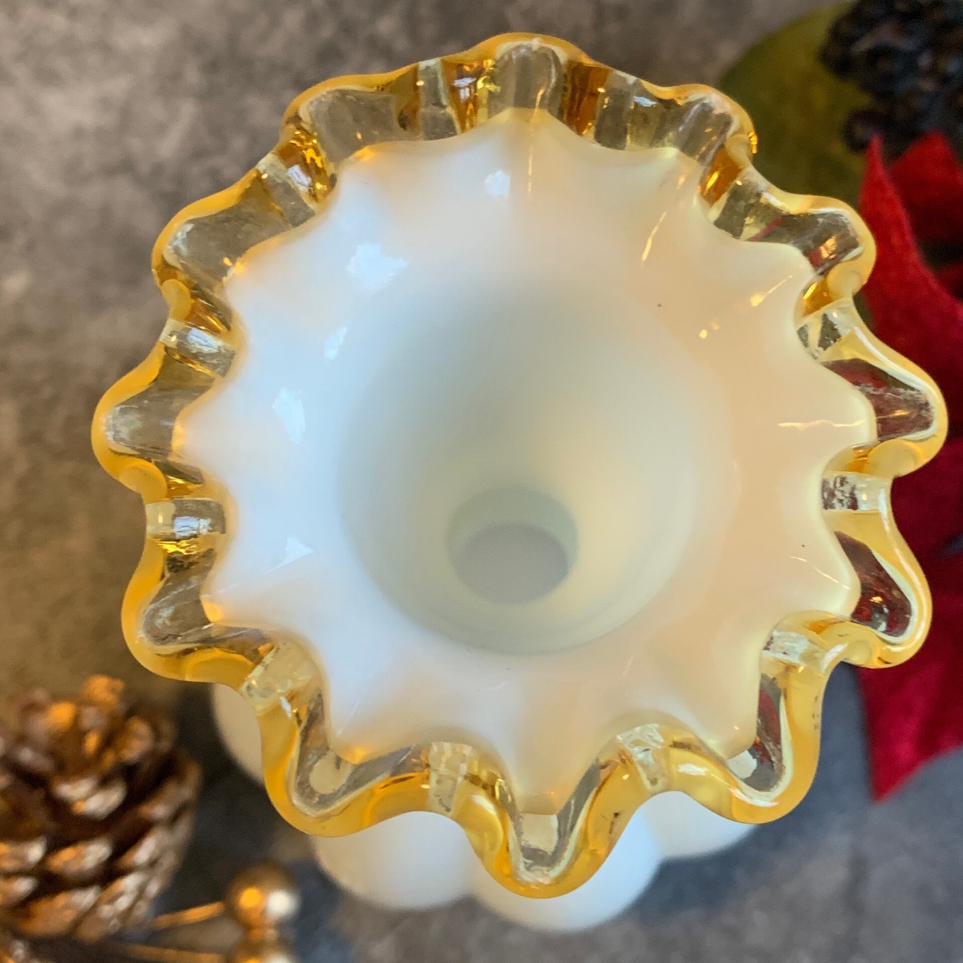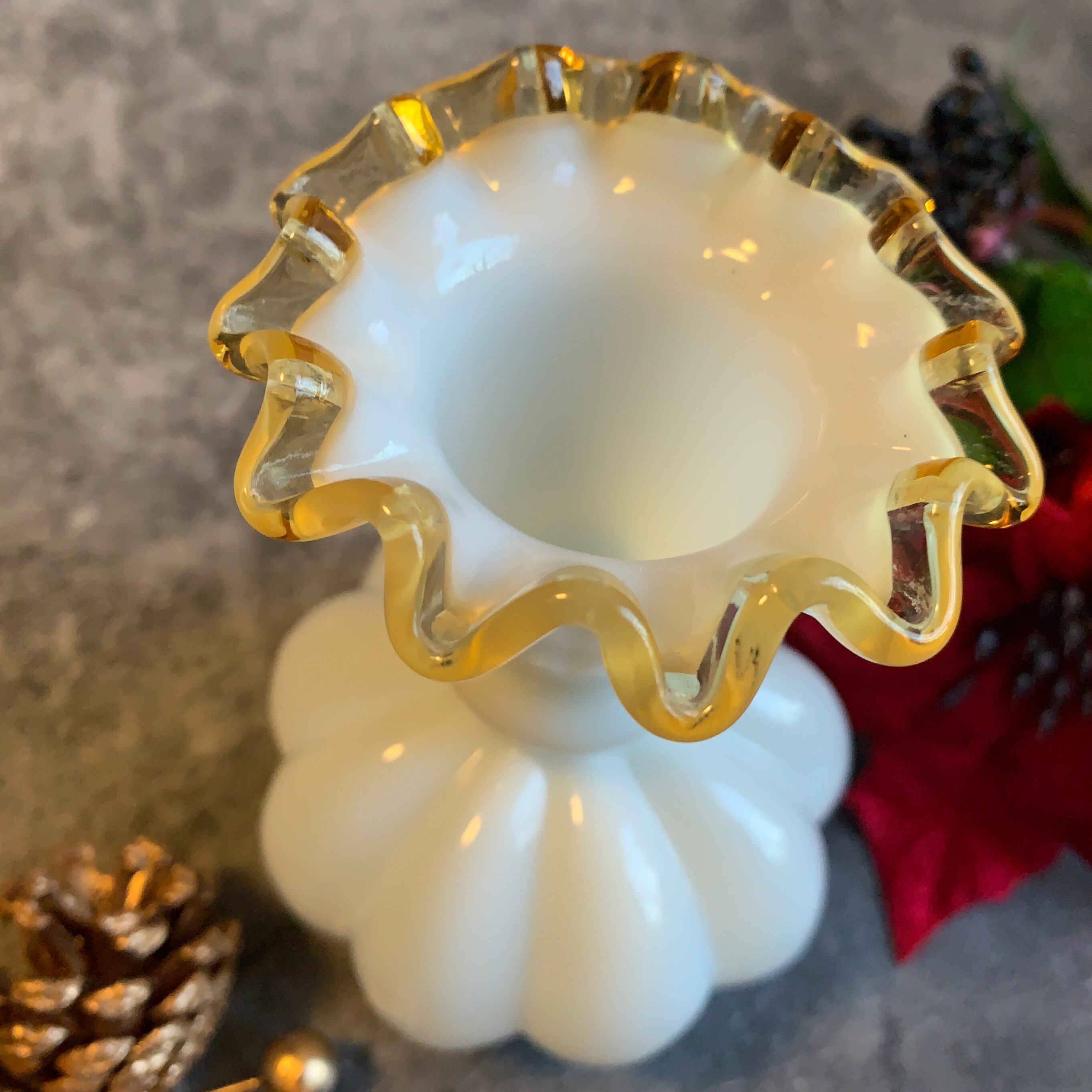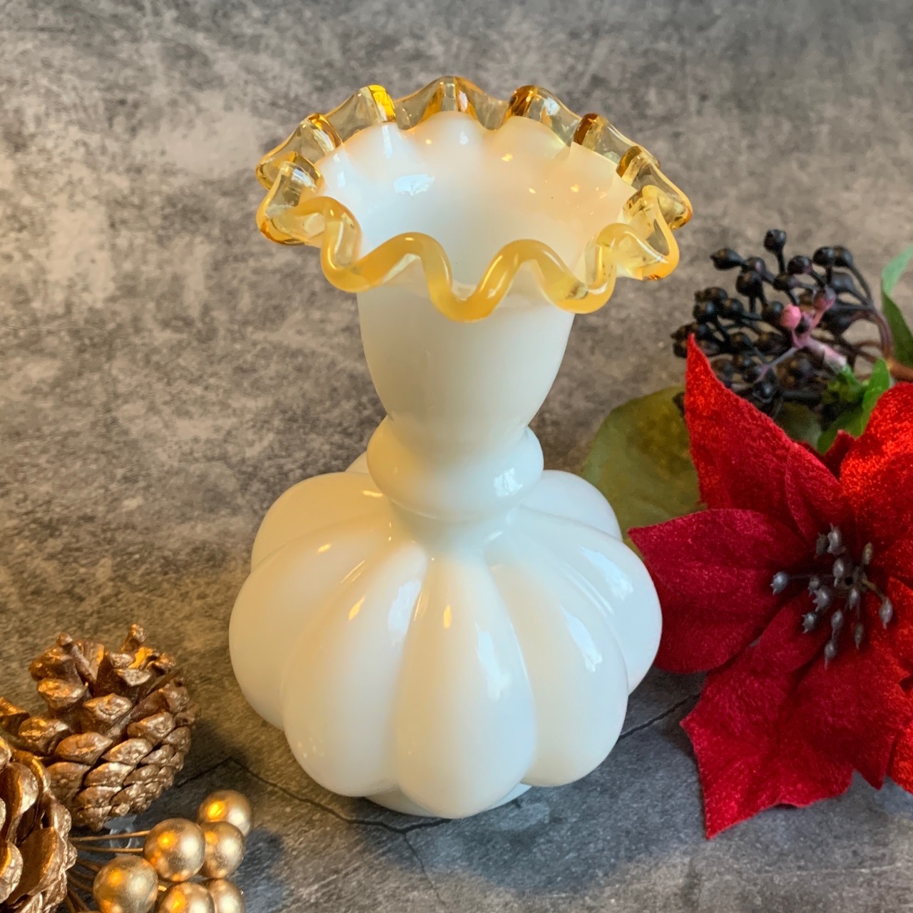 アメリカ✴︎フェントン社 シルバークレスト(フラワーベース)ゴールドイエロー